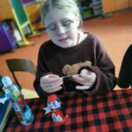 Zaproszeni goście przemieszczali się między stanowiskami, pytając swoich starszych kolegów o znaczenie wróżb. Trzecioklasiści świetnie odnaleźli się w roli „małych wróżbitów”, dlatego na koniec zorganizowaliśmy andrzejkowy poczęstunek.