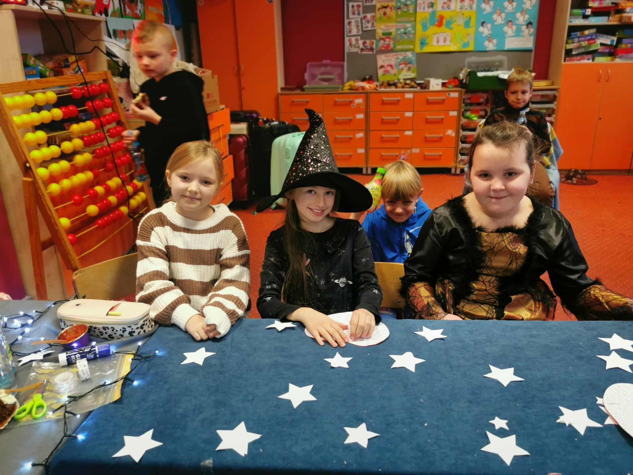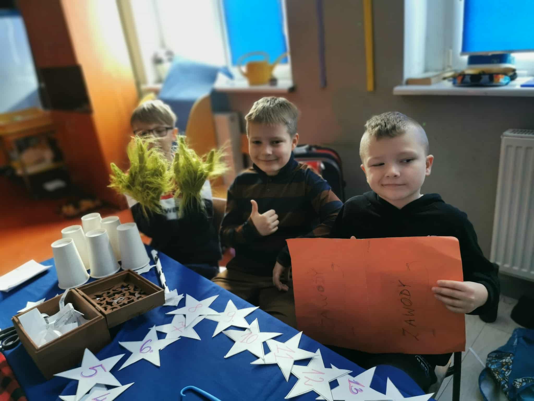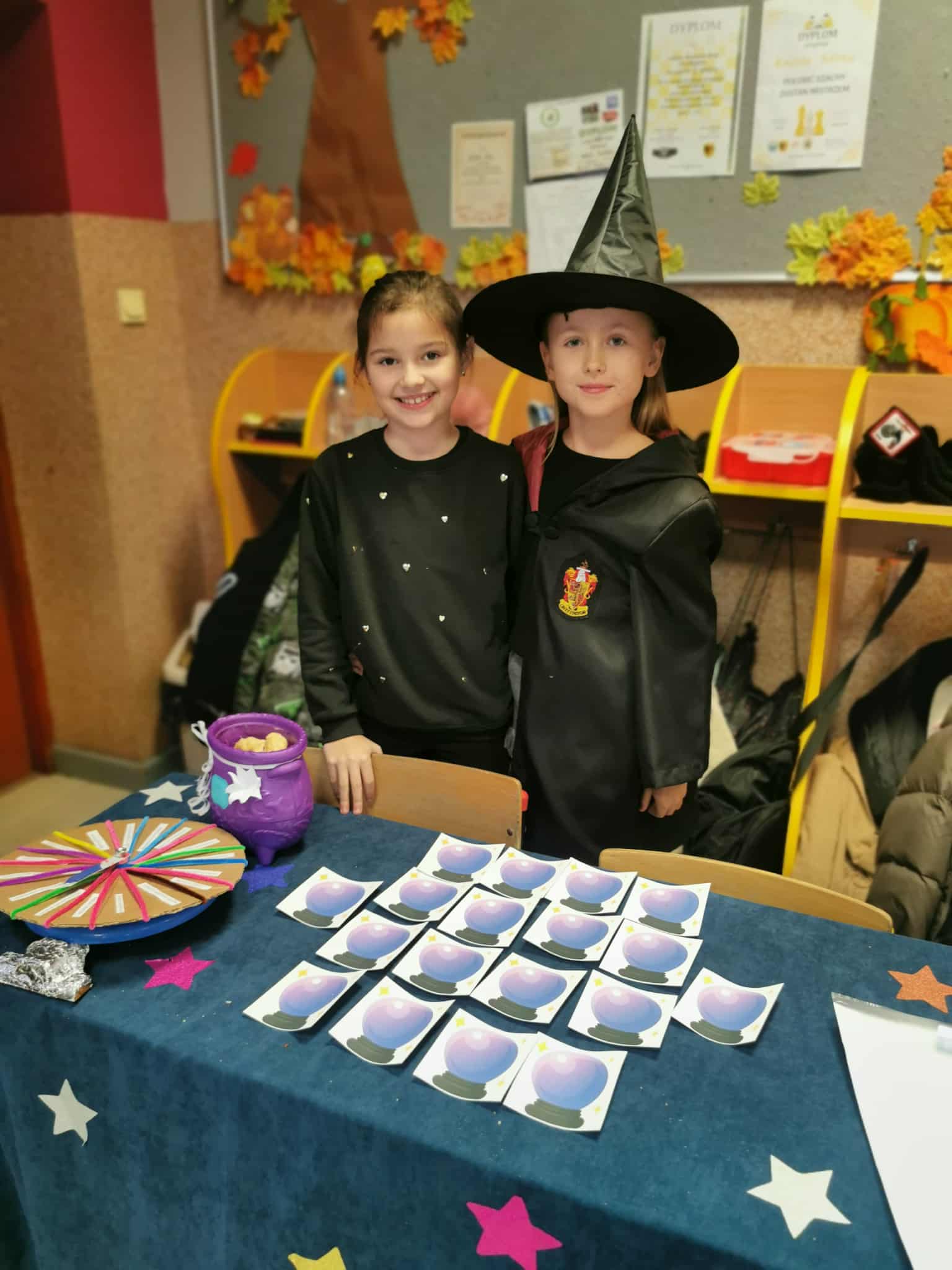 Od samego rana sala klasy 3 zmieniła się w magiczne miejsce pełne kolorowych karteczek, tajemniczych rekwizytów, światełek i… odrobiny czarodziejskiego nastroju. Uczniowie z ogromnym zaangażowaniem przygotowali różnorodne stanowiska z wróżbami: