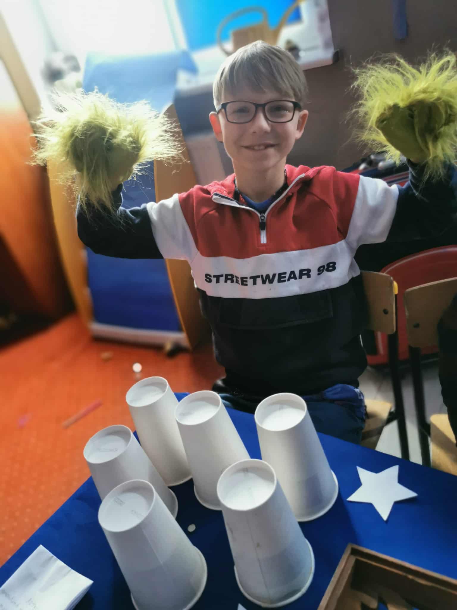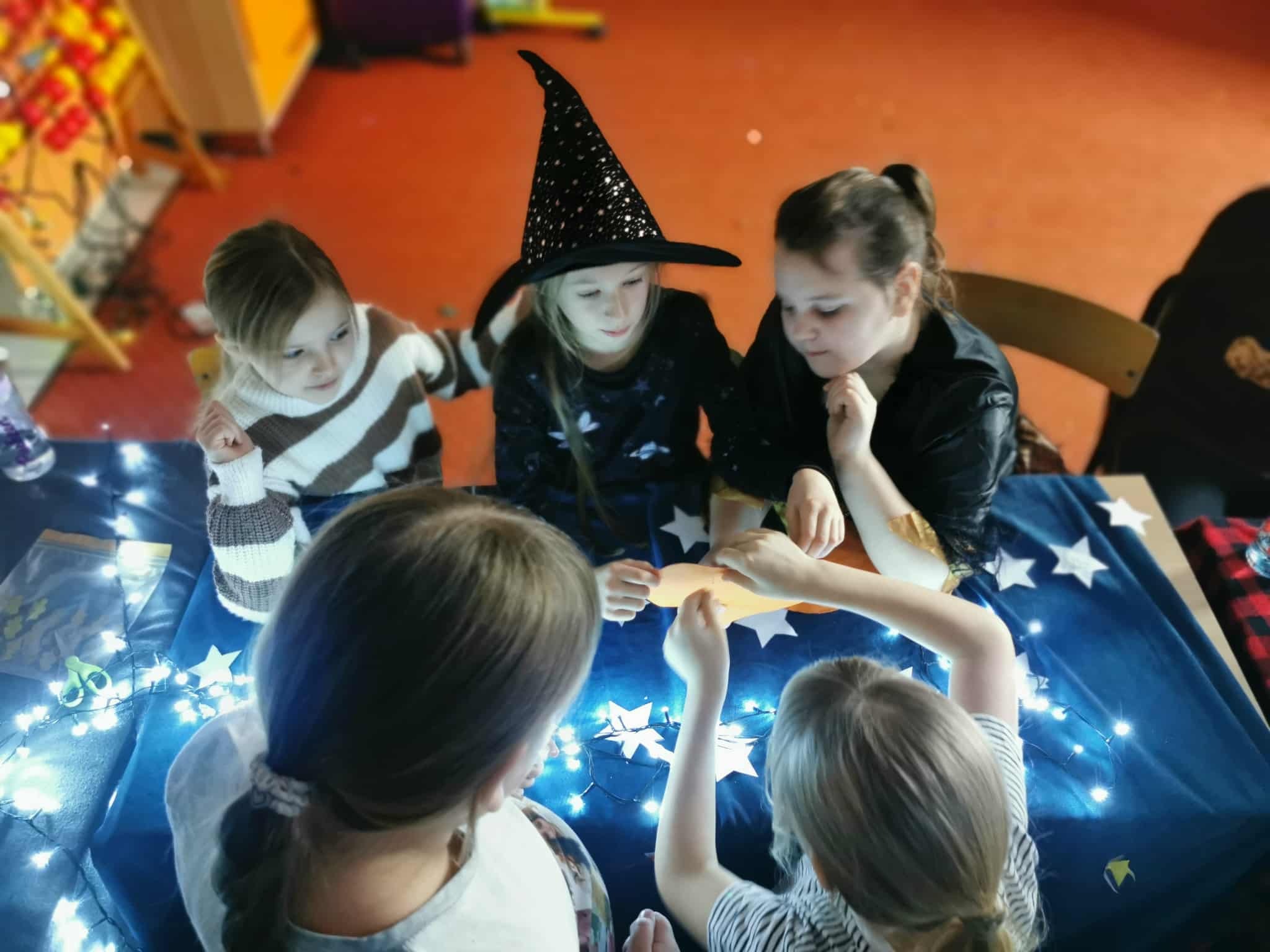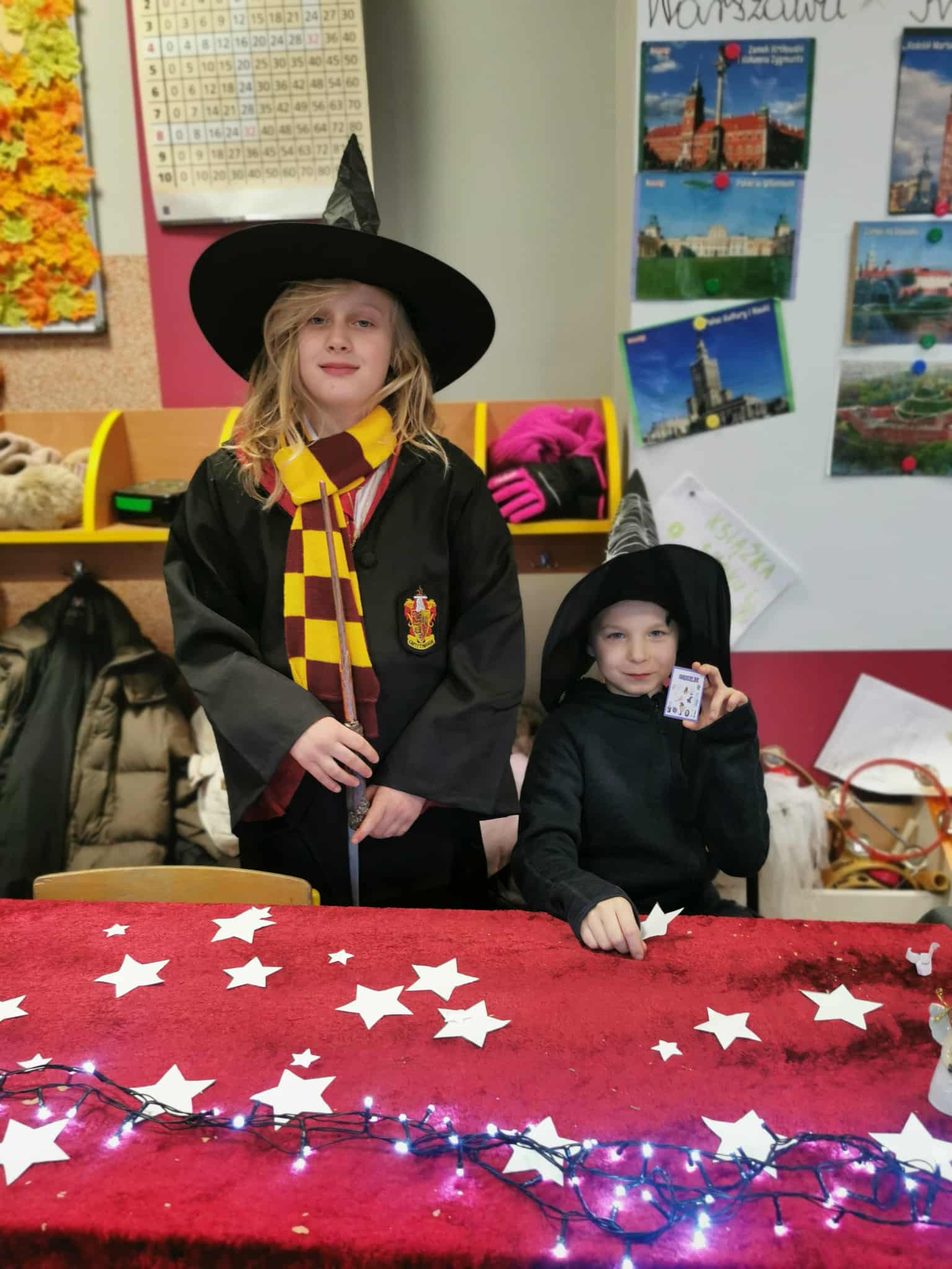 Od samego rana sala klasy 3 zmieniła się w magiczne miejsce pełne kolorowych karteczek, tajemniczych rekwizytów, światełek i… odrobiny czarodziejskiego nastroju. Uczniowie z ogromnym zaangażowaniem przygotowali różnorodne stanowiska z wróżbami: