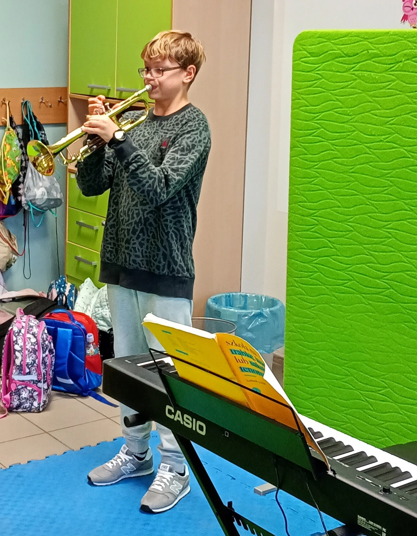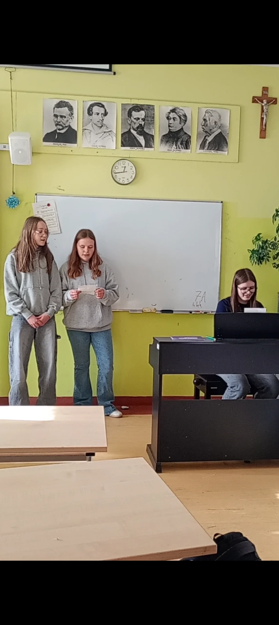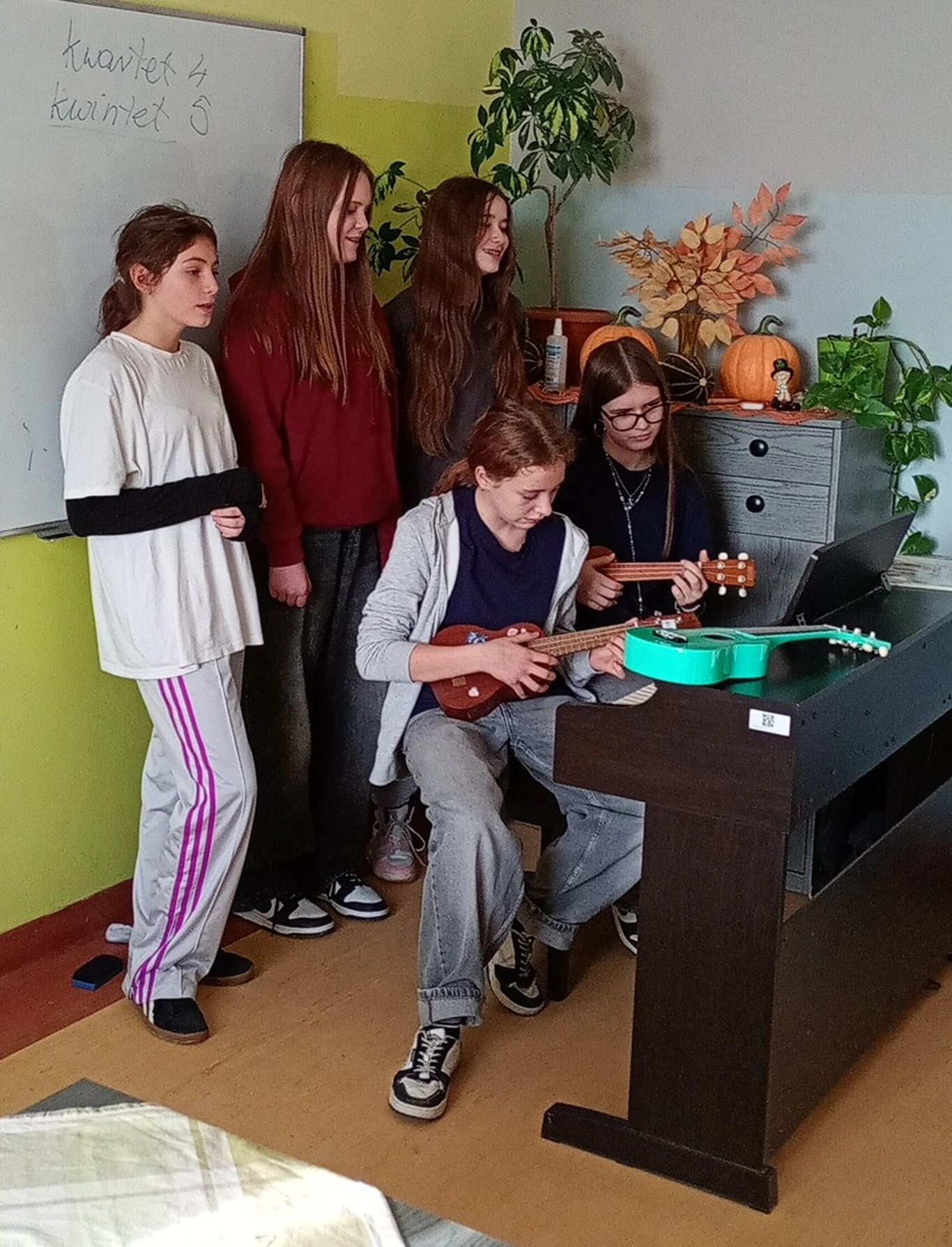 Przez ostatnie tygodnie na lekcjach muzyki odbywały się pokazy talentów. Uczniowie mieli szansę zaprezentować swoje umiejętności w grze na instrumentach, w śpiewie i w tańcu. Można było posłuchać i obejrzeć (a nawet wypróbować) instrumenty takie jak trąbka, puzon, pianino czy ukulele. Występowali zarówno soliści, jak i zespoły w różnej konfiguracji. Niektórzy bardzo kreatywnie i z poczuciem humoru podeszli do zadania. Wielkie brawa dla wszystkich, którzy przełamywali swoją nieśmiałość, bo zmierzyć się z tremą sceniczną to nie lada wyzwanie.